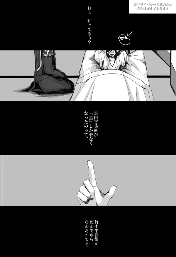 「官兵衛は、竹中氏が亡くなってから黒い服しか身に着けないとかだったらいいな~」っていうのをそのままちょっと使わせてもらいました。