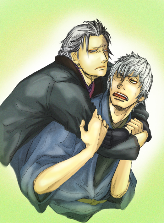 なんとなく状況を把握して、「お前一人でやったの?バカじゃねぇの!?誰かに頼めよ!アホかよ!」だのなんだの言いつつ、立てない官兵衛をおんぶして運ぶ(優しい)。バカにバカとか言われて若干ムッとしつつ、でも助けてもらったので何も言えないので、イラストのあの顔である(笑)。