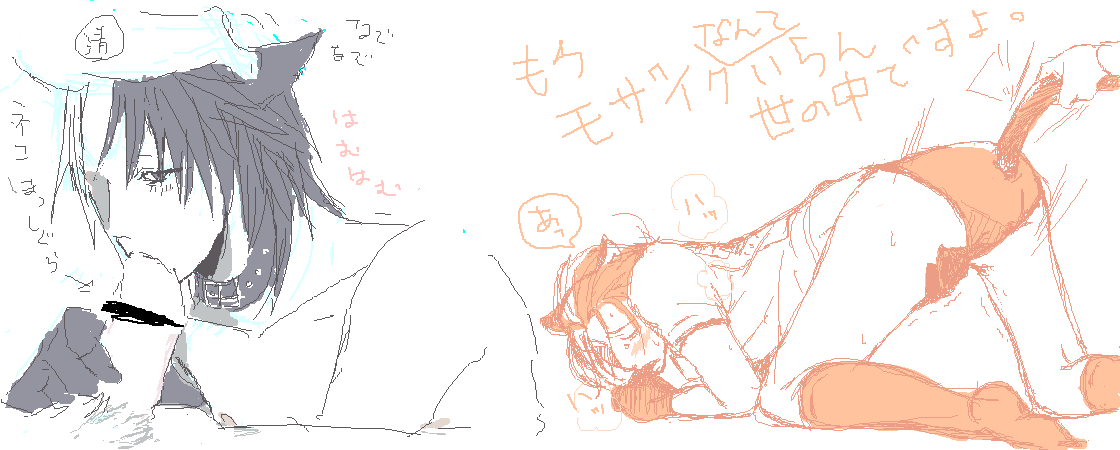 ちなみに右のは、ブルマとねこを合体させて、ブルマに穴あけて震えるヤツでもつっこんだらよかろーて、